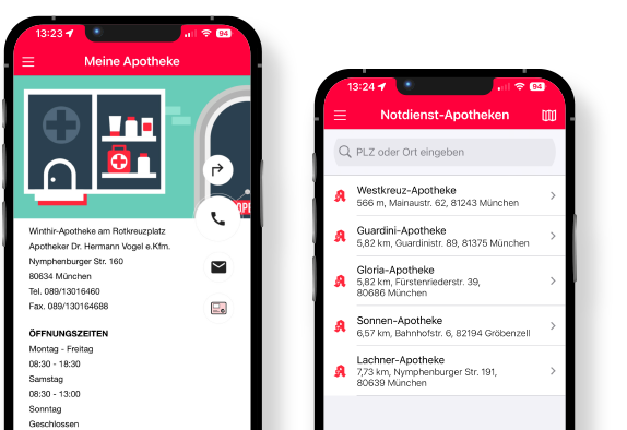 Sie sind viel unterwegs und wollen trotzdem mit Ihrer Stamm-Apotheke, der Winthir Apotheke, in Verbindung bleiben? Kein Problem, die kostenlose Apotheken-App „Meine Apotheke“ ist dafür die ideale Alternative! Alle Infos zu Ihrer Stamm-Apotheke rund um die Uhr und gleich, wo Sie gerade sind, selbstverständlich auch mit Apothekennotdienst!Öffnungszeiten